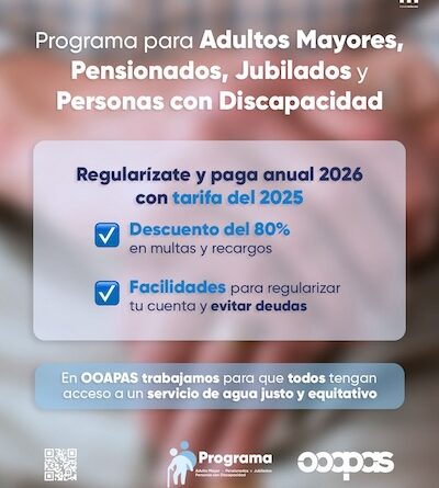 Leer másOoapas impulsa Programa de Apoyo a Adultos Mayores, Pensionados, Jubilados y Personas con Discapacidad durante marzo Hasta 80% de descuento