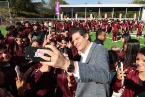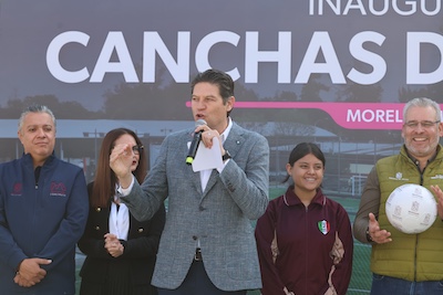 Morelia, Michoacán- El deporte es una de las principales actividades para construir la paz e impulsar a los jóvenes, refrendó el presidente municipal de Morelia, Alfonso Martínez Alcázar, al asistir a la inauguración de las canchas de Fútbol 7 en la Escuela Secundaria Federal Número 2 “Hermanos Flores Magón”.