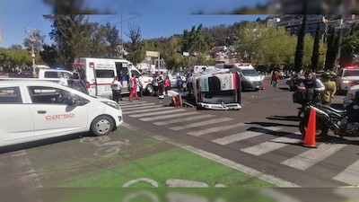 Auto embiste a ambulancia y esta termina volcada; hay un muerto en Morelia