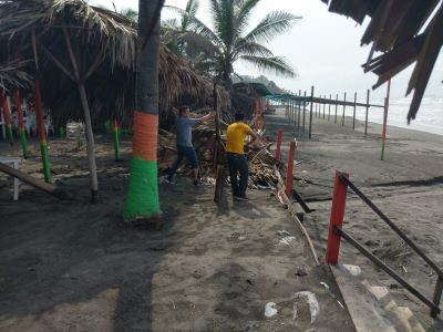 Además de coordinarse con personal del área de Turismo del Ayuntamiento de Lázaro Cárdenas, para supervisar las afectaciones y atender las necesidades de los tres propietarios de las Palapas afectada.