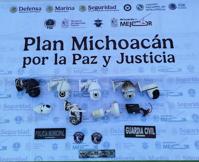 Jacona, Michoacán- Resultado de un operativo interinstitucional coordinado entre los elementos de la Secretaría de Seguridad Pública (SSP), de la Guardia Nacional (GN), y la Policía Municipal de Jacona, se aseguró un circuito de videovigilancia conformado por nueve cámaras, presuntamente utilizado por un grupo de la delincuencia organizada.
