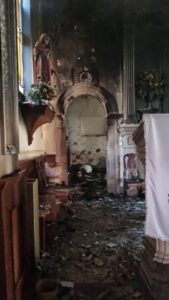 De acuerdo con la información, esta mañana, el individuo llegó a la avenida Ocampo, donde se encuentra el recinto católico, y al parecer roció alguna sustancia inflamable, provocando el incendio en el interior de la iglesia, que dejo daños maternales .