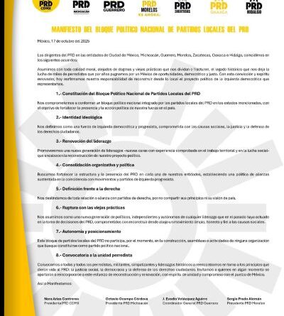 Con este paso, el PRD busca reafirmar su identidad ideológica y política, recuperar su papel en la izquierda mexicana y construir una alternativa que, desde los estados, vuelva a tener voz y presencia nacional.