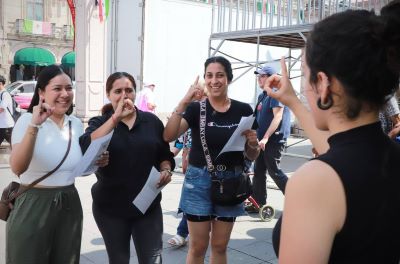 Personas sordas e intérpretes compartieron dinámicas de Lengua de Señas Mexicana en el corazón de la ciudad.