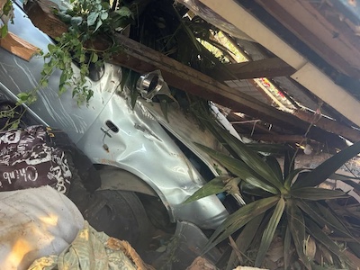 Al llegar, los bomberos localizaron un vehículo tipo Jetta Sedan de color gris con placas de Michoacán dentro de un domicilio, así como una motocicleta Italika tipo 250, color naranja con gris, con sus dos tripulantes lesionados.