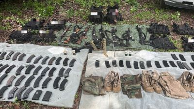 Ejército Mexicano aseguró un arsenal, frazadas, equipo táctico con mas siglas CJNG y droga.