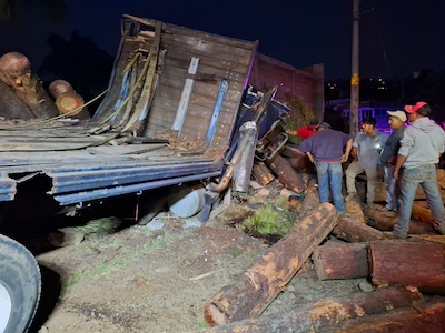 El conductor de un torton cargado con troncos, quedó prensado al vocar su vehículo sobre la carretera Zitácuaro -Aputzio