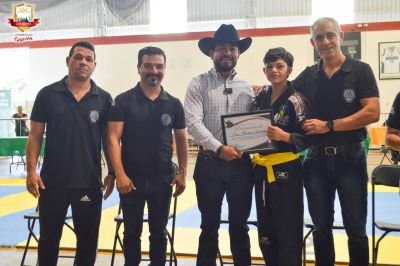 Los Reyes, Michoacán.- El Presidente Municipal, Humberto Jiménez Solís, acompañó el inicio del Torneo de Jiu Jitsu Michoacán Open, realizado en Los Reyes como parte de los festejos patrios y reiteró su compromiso con la promoción del deporte y la activación física en el municipio.