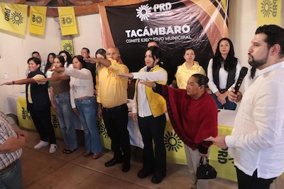 Durante el encuentro, se tomó protesta a los nuevos comités municipales del PRD en Tacámbaro y Ario de Rosales, encabezados por Armando Obet Fraga Ortiz y Ma. Isaías Solís Villafaña, respectivamente.