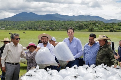 Acompañado por el secretario de Agricultura y Desarrollo Rural, Roberto Carlos López García, el productor piscícola de Tzintzimacato El Grande, Higinio González Balderas, así como autoridades estatales y habitantes de diversas localidades de Morelia, el alcalde destacó la coordinación entre las diferentes instancias de Gobierno, ya que de esta forma los resultados se multiplican.