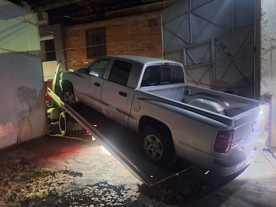 La diligencia fue en seguimiento a actos de investigación que permitieron establecer la posible ubicación de un vehículo tipo pick up, marca Dodge, tipo Dakota, color gris, relacionado con una carpeta de investigación.