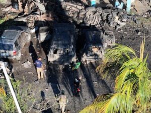 Dijo que la explosión abarcó un perímetro de 300 metros horizontalmente y 50 metros verticalmente, dejando un saldo de cinco muertos, incluidos tres miembros de la Policía de Coahuayana, cuyos cuerpos ya han sido entregados a sus familiares. Torres Piña señaló que dos de las víctimas no han sido identificadas, aunque se sospecha que uno de ellos era el conductor del vehículo que explotó.