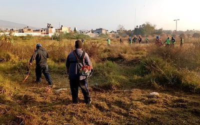 Mediante maquinaria y equipamiento profesional, se logró abarcar esta área de grandes dimensiones, para podar el pasto y vegetación crecida, así como acto seguida retirarla del sitio.