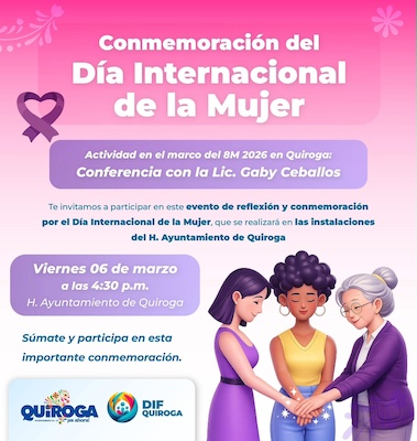 Como parte de esta conmemoración, se realizará una conferencia impartida por la licenciada Gaby Ceballos, actividad que tiene como objetivo generar un espacio de diálogo y análisis sobre la importancia de la participación de las mujeres en la vida social, comunitaria y pública del municipio.