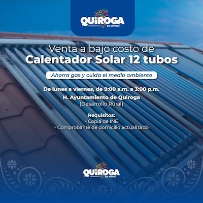 Este beneficio está dirigido a todas las personas interesadas en adquirir un calentador solar de 12 tubos, a un precio accesible, como parte del compromiso del gobierno municipal con el bienestar social y el uso de energías limpias.