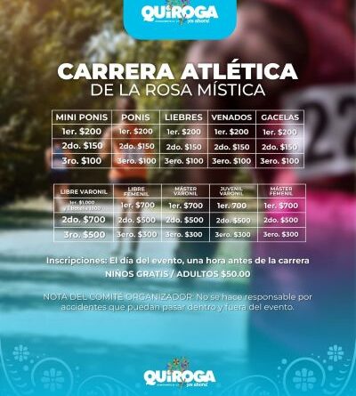 “Queremos que este verano se viva con energía, alegría y convivencia familiar. La Carrera de la Rosa Mística no sólo promueve el deporte, también fortalece nuestros lazos comunitarios. ¡Quiroga es tierra de campeones y vamos a demostrarlo!”, expresó la alcaldesa.