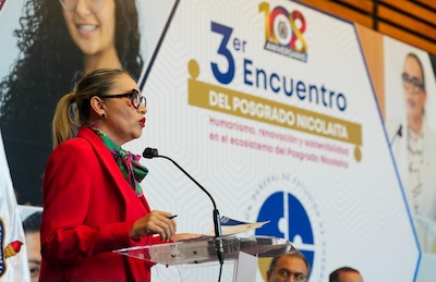 La rectora inauguró el Tercer Encuentro del Posgrado Nicolaita bajo el lema “Humanismo, renovación y sostenibilidad en el ecosistema del Posgrado Nicolaita”.