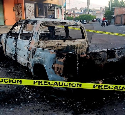 Al sitio llegaron elementos de la policía municipal de Puruándiro, quienes localizaron una camioneta, aparentemente tipo Toyota Tacoma, totalmente calcinada. En el lugar, hallaron casquillos de arma larga, por lo que solicitaron el apoyo de la Fiscalía de Michoacán, que llegó para la recolección de indicios y el traslado de la unidad al corralón.