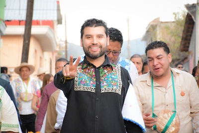 En el marco de esta edición número 35, el líder perredista participó en las actividades de apertura de esta feria, que reúne expresiones culturales y espacios de comercialización, con la participación de productoras, productores, artesanas y artesanos del municipio.