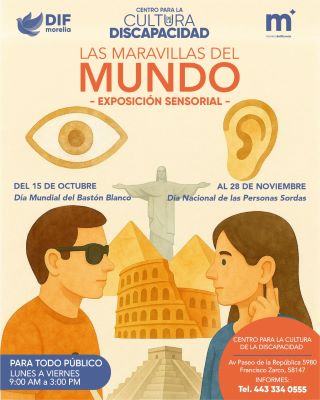 La exposición “Las Maravillas del Mundo” estará abierta del 15 de octubre al 28 de noviembre, de lunes a viernes, de 9:00 a 15:00 horas, en el Centro para la Cultura de la Discapacidad, ubicado en la avenida Paseo de la República #5980, fraccionamiento Francisco Zarco, Morelia. Más información al: 443 334 0555.