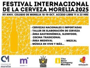 Morelia, Michoacán.- La cultura líquida de Michoacán está de fiesta con el 15 aniversario del Festival Internacional de la Cerveza de Morelia, que se realizará el próximo 18 y 19 de octubre, informó la Secretaría de Turismo del estado (Sectur), dependencia dirigida por Roberto Monroy García.
