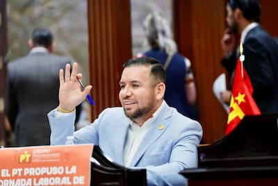 Morelia, Michoacán- “Hoy estamos muy contentos de anunciarles que en Michoacán votamos a favor del pueblo una vez más, que en el Grupo Parlamentario del Partido del Trabajo, votamos a favor de la reducción de la jornada laboral a 40 horas y esto, es una conquista más de la Cuarta Transformación y de todas y todos los trabajadores mexicanos ”, señaló el coordinador de la bancada del PT en el Congreso de Michoacán, Reyes Galindo Pedraza.