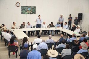 Luego de este recorrido, el alcalde se reunió con agremiados de la Asociación de Productores de Maguey del Sur de Morelia A.A, en compañía de titulares de las diversas dependencias municipales y del Secretario de Finanzas y Administración del Gobierno del Estado, Luis Navarro García, con quien destacó que la mancuerna que han hecho municipio y estado, permitirá mayor beneficio para Tumbisca.