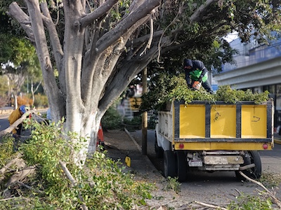 Refuerza Servicios Públicos la seguridad y el entorno urbano con poda de árboles en Calzada La Huerta