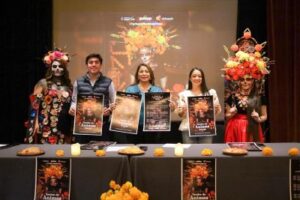 Acto seguido, el secretario de Turismo municipal, Hilario Baltazar Corea, detalló el programa de actividades que comenzará el 31 de octubre con la obra teatral “La Lotería de la Vida” a las 5:00 p.m., seguida del encendido de los altares monumentales.