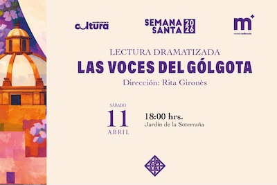 Posteriormente, a las 18:00 horas, se realizará la lectura dramatizada “Las voces del Gólgota”, bajo la dirección de Rita Gironès, en el Jardín de La Soterraña, una propuesta escénica que invita a la reflexión a través de la palabra y la interpretación.
