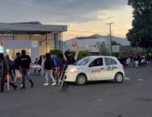 Posteriormente, continuaron su camino y, al llegar a la empresa Coca-Cola, se desató la furia de los normalistas. Vandalizaron el lugar, tumbaron la puerta y, dañaron una camioneta no validada, tipo pick-up, color roja; no se sabe si era de la empresa o de algún cliente. En ese momento, a uno de los normalistas le tronó un petardo en la mano y, de milagro, no le pasó nada.