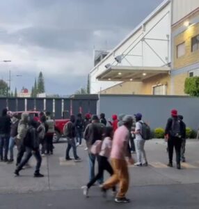 Posteriormente, continuaron su camino y, al llegar a la empresa Coca-Cola, se desató la furia de los normalistas. Vandalizaron el lugar, tumbaron la puerta y, dañaron una camioneta no validada, tipo pick-up, color roja; no se sabe si era de la empresa o de algún cliente. En ese momento, a uno de los normalistas le tronó un petardo en la mano y, de milagro, no le pasó nada.