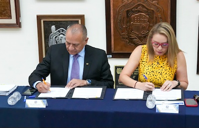 La rectora Yarabí Ávila signó un acuerdo de colaboración con el titular del Instituto Municipal de Planeación, Rubén Flores.