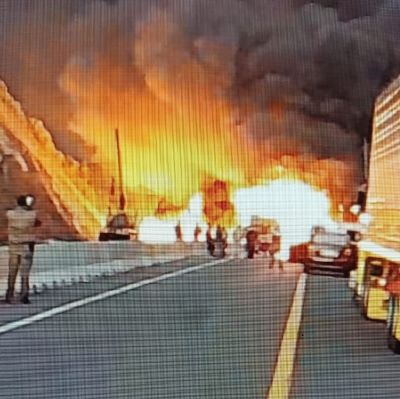 De inmediato la emergencia fue alertada al servicio de emergencias, movilizando a los bomberos y paramédicos de la autopista, quienes confirmaron que no había personas heridas, detectando que había derrame de combustible y rápidamente las llamas se extendieron a los contenedores.