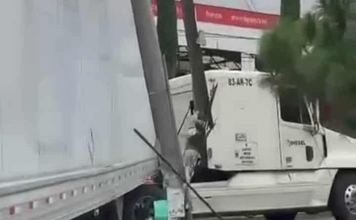 Morelia, Michoacán.-El conductor de un tráiler provocó daños materiales al destrozar dos postes, uno de la Comisión Federal de Electricidad (CFE) y otro de Telmex, además de afectar la fachada de un negocio de ropa, al realizar maniobras para incorporarse de la calle Ignacio Aldama a la Avenida Periodismo.