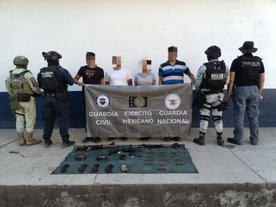 Múgica, Michoacán. – Fuerzas del Ejército y la Guardia Nacional lograron la captura de cuatro individuos, entre ellos El Búho y El Cucú, así como un menor de edad y una mujer, tras un enfrentamiento a balazos en las inmediaciones de la población de Los Cajones.