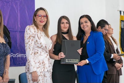 La rectora compartió con las y los graduados que el deseo es verlos desarrollarse profesionalmente con éxito en los distintos ámbitos, al referir que una de las características de la contaduría al igual que la administración es la universalidad, “eso quiere decir que cualquier empresa los necesita”.