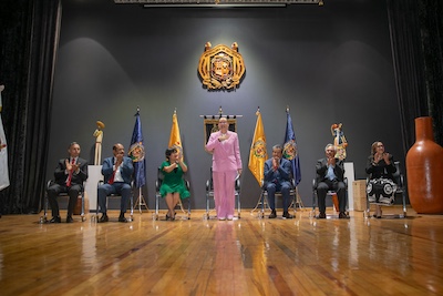 Como egresada de la Máxima Casa de Estudios del Estado, compartió que estar en la UMSNH es sumamente conmovedor, al referir que creció en los pasillos de la Facultad de Derecho y Ciencias Sociales, tras compartir que su madre fue catedrática y su padre director de la dependencia, “junto con mi hermana que también es profesora en esta Universidad crecimos con plena conciencia de su valor y su importancia”.